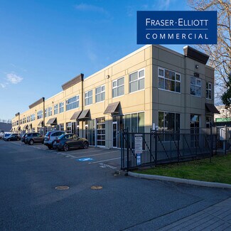 Popular Riverside Industrial Park neighbouring Ironwood Plaza in convenient south Richmond. Easy access to Hwy 99, 91 & 17, YVR, & US border. Great-looking, 10-year young 1,593 sq.ft. (958 sq.ft. on main + 635 sq.ft. up), concrete, tilt-up warehouse. Unit width 23’9”; depth 40’3”. Ceiling heights: 9’10” under mezzanine; 22’4” clear ceiling in warehouse. Two-piece accessible washroom on main. 8’ x 10’ glass, grade-loading in front. Gated complex for extra security. Excellent value for investment or self-usage!