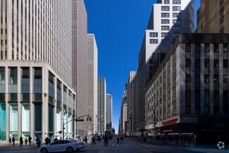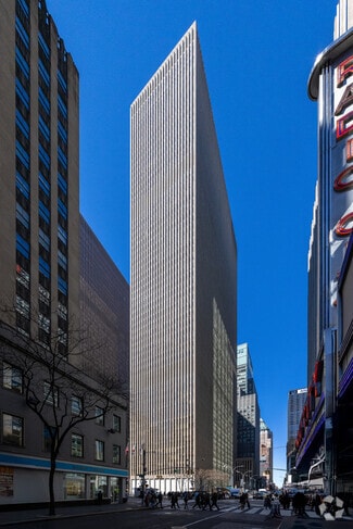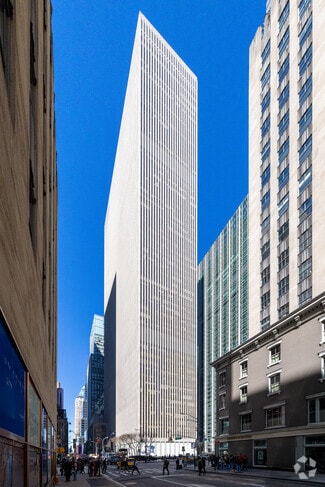 Set back over 100 feet from the Avenue of the Americas, the tower soars above its open, landscaped plaza. Its arcade level interconnects with the Rockefeller Center concourse and is just steps away from dozens of shops and major subway lines. It has high window to floor area ratio, large efficient floor plates, entrances on 49th & 50th Streets and a 725 car garage.