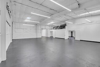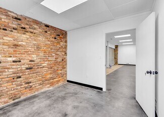 The building has been completely renovated, with upgrades including an automatic sliding garage door and a concrete ramp for vehicle access into the warehouse area.
