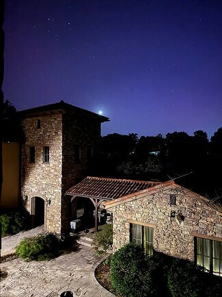 The estate includes a 9,400-square-foot main residence situated on 6.9 acres with approximately ¼ mile of golf-course frontage, creating a natural sense of arrival, privacy, and resort-level ambiance. A 600-square-foot guesthouse currently generates meaningful Airbnb/VRBO income, demonstrating immediate short-term rental viability. More than 3,000 square feet of finished outdoor living and gathering space—including courtyards, balconies, patios, breezeways, porches, decks, and a newly remodeled 2025 pool—provide ideal infrastructure for events, retreats, group lodging, and hospitality programming.