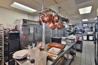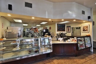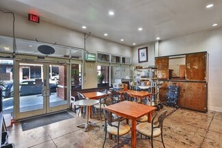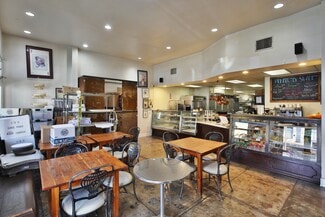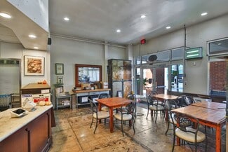 • Beautifully improved with a full bakery & café build-out, air conditioning, 25 ft of street frontage, and direct access to a shared outdoor patio