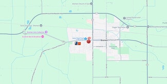 storage, laundry facilities, and building mechanicals. The second unit, currently leased to State Farm Insurance, is 1,464 square feet and includes a reception area, three private offices, a restroom, conference room, and storage space. The third unit is a 984-square-foot apartment with three bedrooms, one bathroom, and an attached two-car garage. This unit is currently occupied. This building offers a mix of commercial and residential use, suitable for investors or owner-users. Located in downtown Bremen 1 mile south of the intersection of State Rd 331 and US Highway 6.