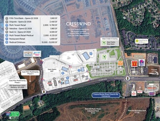 Ground Lease, Single Tenant BTS and Multi-Tenant opportunities along Albemarle Road (Hwy 24/27). Clear Creek Farm sits immediately adjacent to a new Publix, What-A-Burger and Chase Bank (Clear Creek Crossing). Just off I-485, the site has superior visibility and access, via a myriad of connections including signalized access to Albemarle Road at Cresswind Boulevard. Clear Creek Farm is surrounded by a +850 home single family residential project, Cresswind, as well as multiple new apartment project and the Novant hospital serving the surrounding community.
