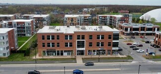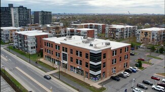 The properties at 1255 and 1275 Chemin du Tremblay in Longueuil are commercial office buildings offering multiple suites for lease. They are located near major transportation routes, including Autoroutes 20 and 132, and are in proximity to the Saint-Hubert Airport, Longueuil courthouse, and Pierre-Boucher Hospital. The buildings provide interior and exterior parking and elevator access. The surrounding area includes residential developments and commercial services.