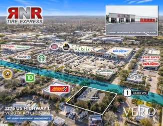 RNR Tire Express operates more than 200 locations nationwide and continues to expand across strong suburban markets. The property is positioned along US Highway 1, directly across from a Publix anchored shopping center, within one of Vero Beach’s primary retail and traffic corridors serving the city’s more densely populated residential base.