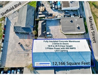 PROPERTY HIGHLIGHTS: Newly Renovated Concrete Warehouse FOR LEASE! Single Tenant 12,166 SF on 0.35 AC Clear Height: 18 FT to 28 FT Two Drive-In Doors with Direct Access off Market Street Fully Insulated Warehouse with LED Lighting 500 SF Dedicated Office with Restroom and Slop Sink HEAVY POWER: 3-Phase with 600 AMPS *Can Be Upgraded to 1,200 AMPS! Access Easement off Sheffield Rd. 2026 IMPROVEMENTS: ALL NEW: Roof, Insulation, Office and Restroom, LED Lighting, Sealed Warehouse Floor, Interior and Exterior Paint