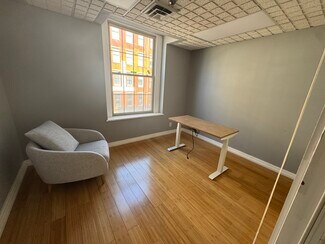 This boutique office building is located on the unit block of Chestnut Street amid a vibrant international restaurant scene (Cuban, Peruvian, Yemen, Korean, Chinese, Nigerian; US-Southern, Irish, Japan, Bubble Tea, Mochanut) all within one block. Building has on site management and offers full service. No CAM charges. We maintain low density and will not rent to high traffic users. Tenant base is primarily lawyers, mental health providers, and consulting firms. This open space on our top floor is under renovation to provide some individual open, airy office spaces, a conference room, kitchen, and breakout rooms. High ceilings in this light filled space overlook historic Chestnut St. COMING SOON. Individual offices also available.