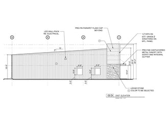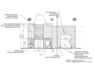 • Features 22'–18' clear heights, wind-rated overhead door, storefront glass, and LED lighting.