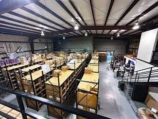 Office space: 2,550 square feet with 4 downstairs offices and 6 upstairs offices Warehouse space: 10,256 square feet with 3 dock doors and one roll-up door Ceiling clearance: 27 feet Utilities: 3 Phase electric Parking: 20 on-site parking spaces Other: Includes a reception area, 3 restrooms, and a break room