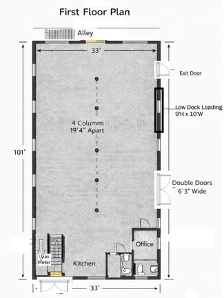 Low-dock loading (1’6”): 10’W x 9’H