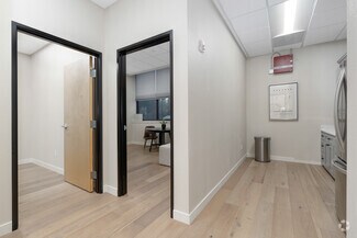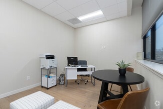 Each suite features a turnkey layout, including private offices, conference rooms, and ample reception or entry space. Additional amenities include a breakroom, ADA-compliant restrooms (one encompasses a shower), a printing station, storefront windows, and private entry. The spaces are equipped with independent HVAC systems, allowing for separate climate control. Both suites also feature energy-efficient lighting and meet ADA compliance standards.