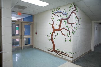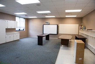 The property also features four newly renovated shower stalls in the west wing, adding to the building's versatility and appeal. The building includes a total of nine bathrooms, comprising three boys, two girls, and four any gender restrooms. Additionally, the property offers 12 more fully functional classrooms, most equipped with water hook-ups for sink installations. Many classrooms feature projectors, providing a modern learning or presentation environment. A dedicated utility room is also available, featuring hook-ups for four sets of washers and dryers. The property's large library offers flexible space that can be transformed into a common area or game room. Many rooms throughout the facility include new flooring and modern windows, enhancing the building's overall appeal and energy efficiency. Ample storage rooms are located throughout the building, providing more than enough space for supplies, equipment, or inventory.