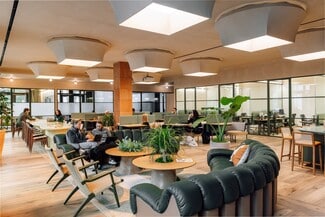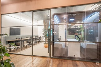 Members enjoy a full suite of lifestyle and business amenities that go far beyond the standard coworking model. Springline offers underground parking, a cutting-edge golf simulator and entertainment lounge, and a modern fitness center with locker rooms. Nearly 2 acres of landscaped outdoor space provide fresh air and natural light throughout the day, while an on-site dog park ensures the campus is as welcoming to pets as it is to people.