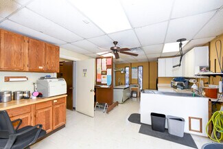 Stand-alone building off a busy street that has been a veterinarian office for over 50 years. Just recently closed. Building includes a patient waiting room with bathroom, front desk area, three examination rooms, kennel room with over 15 kennels, office area with full bathroom, kitchen area with washer/dryer/stove/sink/microwave. Also, operating & x-ray room, plus pet bathing area. All equipment/supplies go with sale if wanted. Parking lot with 16 parking slots. Seller has files with over 1,000 past clients that could be included in sale as well.