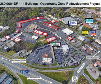 Located in an Opportunity Zone! Excellent location in central NC, visibility from local streets and major highways, high traffic on interstate 85/40 with over 120,000 CPD. Turnkey, move-in ready units. Excellent physical conditions, individual units from 2,000 to 22,500 SF, abundant parking fields and great spaces available in multiple buildings. Flexible zoning diverse uses encouraged. Direct access to interstates 85 & 40 with under 40 minutes to two international airports. Economic, geographic and demographic advantages.