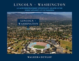 offers investors the perfect chance to capitalize on an established market by building for-sale townhomes or developing Class-A apartments. Within a 3-mile radius of the site, the average household income exceeds $145K, and the median home-price in the 91103 code is $1,113,462. Lincoln + Washington is located less than a mile away from the iconic Rose Bowl and two miles from Old Town Pasadena: the business district of Pasadena that is known for its sun-drenched