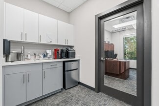 The existing 10,592-square-foot office building sits on a 1.07-acre site and is thoughtfully designed for both owner-users and investors. The building is configured with six separately metered office suites, providing flexibility for multi-tenant occupancy or partial owner use. Interior finishes include six modern kitchenettes with quartz countertops and stainless steel appliances, multiple interior stairwells, an elevator, and a secure access control system. Additional highlights include ample parking, EV charging stations, and crown signage on two sides for enhanced branding. Second-floor offices enjoy scenic views of Lake Mary, further elevating the work environment.