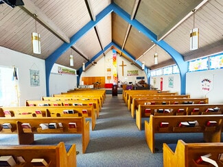 Property is currently occupied by a church. Available to lease for use on Sundays after 12PM and Monday-Friday 8AM-5PM.