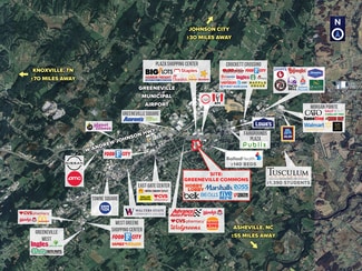 • Located between two major thoroughfares within the heart of Greeneville’s retail area and boasts access from both E Andrew Johnson Hwy and Tusculum Bl