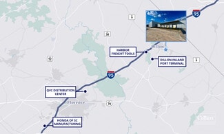 1317 E Main Street is a 53,920 SF industrial facility situated on 2.56 acres in Dillon, SC. The property includes approximately 0.75 acres of usable laydown area, providing flexibility for outdoor storage. Built in 1972 and renovated in 2025, the facility offers a mix of high clear heights and functional loading capabilities. The main warehouse features a 38 ft clear height, with the remaining portions ranging from 13-17 ft clear. The building includes 1,600 SF of office space, seven (7) loading docks with edge of dock levelers (8' x 8'), and two (2) drive-in doors (8' x 8' and 14' x 14'). Heavy 3-phase power, along with city water and sewer, supports a variety of manufacturing and distribution uses. NNN fees are estimated at $0.60/SF. This property is also available for sale for $2,426,400 ($45/SF).