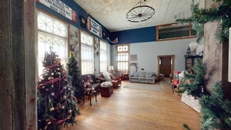 INTRODUCING A TRULY ONE-OF-A-KIND COMMERCIAL PROPERTY THAT EXUDES HISTORY AND CHARM. This unique gem is steeped in a rich past, boasting original hardwoods and stained glass windows that transport you to a bygone era. With its historic charm this property offers an exciting opportunity for your business ventures. Upon entering, you'll be greeted by the welcoming vestibule then into an expansive main area with a soaring ceiling that creates an open and inviting atmosphere. The loft overlooking this space provides a perfect vantage point to observe the bustling activities below, making it ideal for a private office. Whether you envision an office space or a sales area, this property has a walled-off room that can be tailored to suit your specific needs. For those looking to host events or performances, a raised stage offers an elevated platform to showcase talents and engage with the audience. Imagine the endless possibilities for concerts, theater performances, or product launches in this captivating setting. The property also features a kitchen and pantry area. Convenience is key, with access to the lower level from both ends of the building. The lower level of this property offers a generous open space, perfect for storage or a workshop. The versatility of this area ensures you can adapt it to suit your business needs, maximizing its potential and functionality. As an added bonus, this unique commercial property sits on a mature, generous-sized lot, providing ample outdoor space for future expansions or relaxation areas. Its location within the Business District ensures easy access to adynamic customer base and potential collaborators. Don't miss this golden opportunity to transform this historic space into the commercial haven of your dreams. Bring your plans and imagination, and let this charming property be the foundation for your business's success. Embrace the past while forging a prosperous future in this exceptional commercial space. With some elbow grease and a vision, you can bring your dream to life. *Being sold as is*