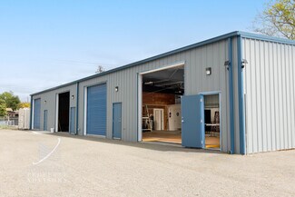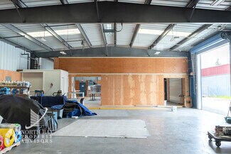 Building B, constructed with a metal frame, includes two restrooms, two large roll-up doors (14’ x 14’8”), and a peak interior height of 14’5”.