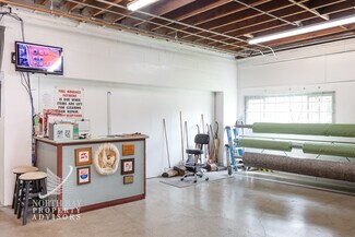 Building A, features a built-out interior with two restrooms and four grade-level roll-up doors—two measuring 10’ x 10’ and two measuring 7’ x 8’. The majority of the building has a ceiling height of 10’4’’, with a high-ceiling section rising to 26’10”.
