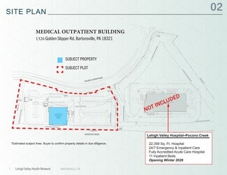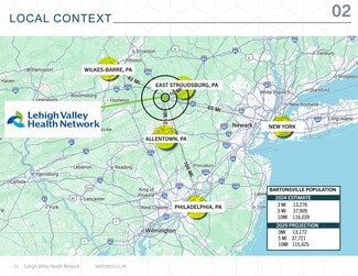 Strategically located along Pennsylvania Route 611 with proximity to Interstate 80, the site benefits from strong visibility and accessibility within Monroe County’s Pocono region. The surrounding area features a balanced mix of residential and commercial development, with household incomes approaching $100,000 and a growing demand for healthcare services. This location serves as a critical hub for outpatient care, supported by demographic trends including an aging population and steady regional growth.