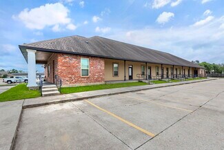 Commercial office-multi complex available in Denham Springs. In addition to the number of offices, many also have a reception and waiting area, conference room, or individual cubicles. The building is shared with a variety of professional businesses. These suites can be completely private, or multiple rented and joined for a shared/larger office. Units have stamped concrete porches, slate flooring & counter tops, crown molding, high ceilings plus more! Conveniently located behind Office Depot, Hancock Bank, & just across from Home Depot. Only 2 minutes off I-12! This building has 8 office suites that range from 675 SF to 1009 SF