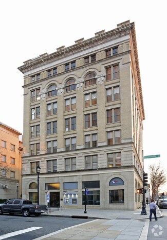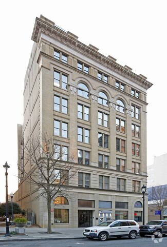 Built in 1907, the Masonic Temple Building is among the most prominent buildings in downtown Raleigh. The Masonic Temple Building was North Carolina’s first skyscraper—at the time, towering seven stories—and is the state’s oldest surviving steel-reinforced concrete structure. The building was designed by Charles McMillan, a prominent South Carolina architect, who used elements of Louis Sullivan’s architectural style including tripartite massing and decorative Beaux Arts ornamentation. Exterior finishes include Indiana limestone, tan brick and decorative terra cotta. The Masonic Temple Building is individually listed in the National Register of Historic Places, and was designated as a City of Raleigh Historic Landmark in 1979.
