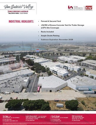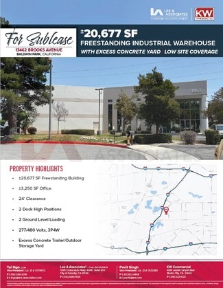 Freestanding distribution warehouse with secured excess concrete yard. Immediate freeway access to the 605, 10, 60 and 210 freeways.