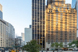 Step into the main entrance to the lobby of 1350 Avenue of the Americas building from West 55th Street Plaza. The recently renovated lobby has a dropped reflective ceiling, backlit, and recessed, direct, and indirect lighting. The lobby is finished with marble tile walls and columns along a terrazzo and granite floor. Both retail spaces have direct access to the lobby. The concierge desk is staffed by security personnel 24 hours a day, seven days a week. The building also has an electronic surveillance system monitored at the concierge desk throughout the property.