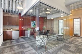 The suite is fully furnished and move-in ready the enclosed glass conference room or Private Office Option complete with conference table / desk and seating. The Office open to a wonderful open atmosphere with 6 desks - One behind a divider - perfect for your Copier, supplies and other needs. And a convenient kitchenette with sink and mini refrigerator provide additional functionality for day-to-day operations. The Men's and woman's restrooms are located just outside the Suite on the 3rd floor.