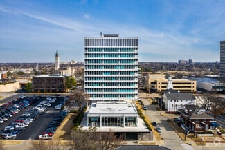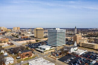 The International Plaza is an all glass, modern building totaling 115,000 square feet. It is an award winning well-designed building, originally built in 1957 by Skidmore Owings and Merrill. It is located between 14th and Boulder Ave, in the heart of uptown Tulsa. Each floor provides 360º magnificent views of the downtown Tulsa area and there are many amenities available for tenants. Cafeteria is being renovated into office space.