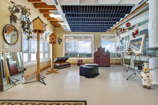 Highly visible and impressive newer built 1.5 story commercial building! The owner spared no expense in quality. Currently a home remodel and awning show room with generous office space. Stunning owner's suite with cherry floors, kitchenette and fireplace. Large finished heated warehouse with three 14 foot overhead doors and second floor storage. Tankless hot water tank and water softener. There is a third bathroom opportunity ready to be finished. Large 2 acre lot with plenty of parking and room to build out buildings or additional storage. The owner can hold financing with 40% down.