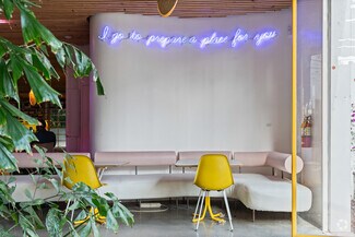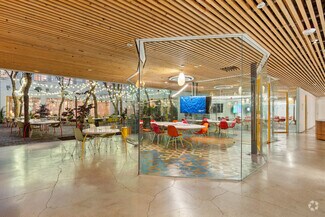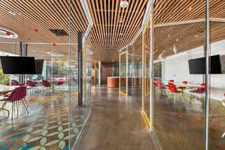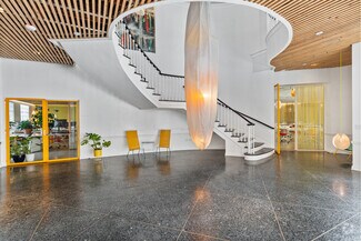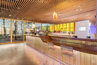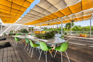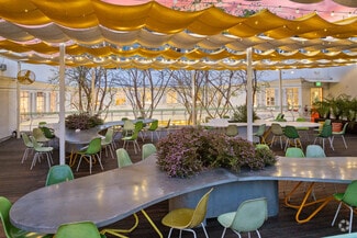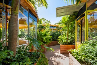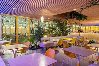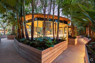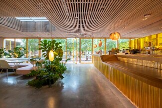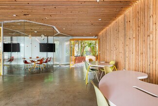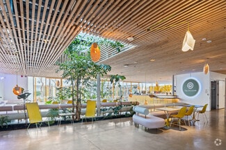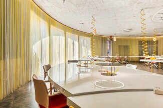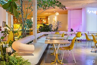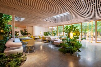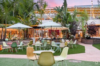 Originally designed by Paul R. Williams, famed architect to the stars, this historic 30,000-square-foot Colonial Revival building was reimagined into a mid century marvel by Spanish Architectural firm SelgasCano. Decades apart these two visionaries have unwittingly become partners, fusing the timelessness of the past with a forward-thinking design that embodies the future workplace. A former Hollywood parking lot has been transformed into a two-acre site with a sprawling, creative office campus designed with a modern approach. Located in the heart of Hollywood, this thriving campus offers businesses an immeasurable opportunity to be seen as an anchor in the community. Selgas Cano reinvented the workplace cubicle, by creating “studios,” encased in faceted glass from desk height up, with sound-buffering coconut-weaved ceiling tiles. Long, wavy-edged team desks, punctuated by eclectic table lamps, line the interiors. An outdoor fountain and grand stairway lead into the main building and reflect the architect’s vision of a hip, fresh and imaginative design that aligns with the rest of the campus. Outside the main building, the site is encompassed by sixty oval-shaped office pods of varying sizes, which are topped with bright yellow rooftops, outfitted with glass walls and are each independent of the others. Intense competition for young talent is forcing companies to adjust their perspective on the workplace and establish new business models to entice employees. With teams spending more time at work than ever, workspaces have become self-contained communities where employees can improve their work-life balance. Employees crave a work environment that fosters creativity, collaboration and gives them a place to restore. This enviable campus meets these needs by creating dedicated areas for team building and relaxation. This is more than a creative office campus, it’s a flourishing ecosystem with design features and lifestyle amenities employees crave.