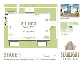 Located near NASA’s Michoud Assembly Facility, Starlight Studios offers a rare opportunity to acquire a large industrial site with both warehouse space and significant land area in New Orleans East.