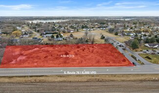 Discover a rare chance to acquire a 4.66-acre corner lot in the thriving community of Poplar Grove, IL. This strategically located site boasts improvements with all utilities in place, except for water service, which is conveniently located just 110 feet away across Route 76.