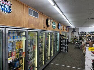 Stand alone building, corner lot, four curb cuts, drive thru, leased to "Broudy's Liquor Store" lease ends October 31st 2022.