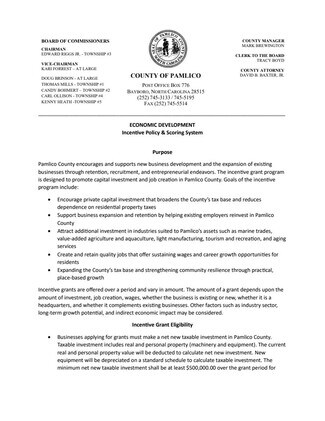 PAMLICO COUNTY INCENTIVE GRANT PROGRAM