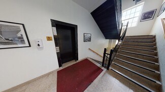 features and elevator in the main entrance lobby, multiple key-coded restrooms available for tenant or customer