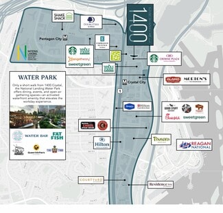 Highlights: For leasing information: Stoddie Nibley | 703-284-5862 | SNibley@lpc.com Immediate Access to I-395, GW Parkway, the Pentagon and Reagan National Airport Superb views of Washington, DC, and the monuments 308,898 square feet at 1400 Crystal Drive An additional 130,000 rentable square feet of Class B space available at Jefferson Plaza Surrounded by over 100 restaurants, 4,500 hotel rooms, and numerous retail amenities Located in the heart of Crystal City and is only minutes from the Pentagon, Pentagon City, downtown Washington and Capitol Hill Located less than two blocks from the Yellow and Blue Line Metro stop and the VRE.