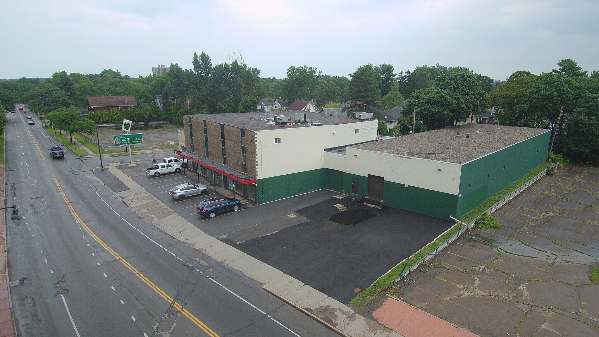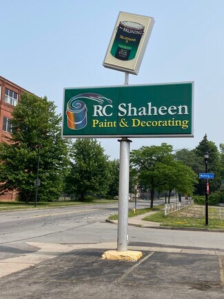 Renovated flex building High-bay warehouse space Loading dock and drive-in door Office space Located at signalized intersection Zoned M-1 Industrial Pylon sign Additional square footage in basement with conveyor system - excellent for storage
