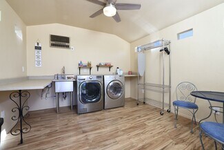 Enjoy the serene outdoor setting from the centerpiece of the property, a sparkling spool (a combination of a spa and a pool) perfect for relaxation amidst the natural beauty of the massive mesquites. A private, separate laundry building ensures convenience and efficiency for both residents and guests.