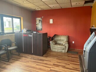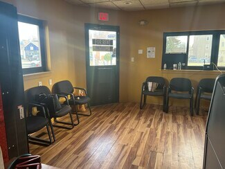 Rarely available Commercial/industrial Space available in town. Great Exposure and visibility, located on busy Ferry street! Perfect for mechanic, automotive repairs, tire changing, business etc. Street walk-in with reception and waiting area with access to large office space on 2nd floor. 1 Full bathroom on 2nd floor and 1 half on main level. The Garage is an open space approx. 2200 sq ft 4 drive-ins and 4 lifts. 3 bays are deep to fit 2 cars and 1 bay can feet 3 cars. 4 Lifts are included in the Lease- 7000 and 9000 lb. Air compressor and other specialty tools/ machinery can be negotiated in the lease. The Garage is heated ( by gas) and cooled -2 zones. Office space has brand new HVAC system, located in the basement. Corner lot with parking for 10-12 cars outside. $8000 Base Rent NNN. Tenants to pay for Property Taxes, Maintenance/Utilities and Insurance. Available to occupy NOW.