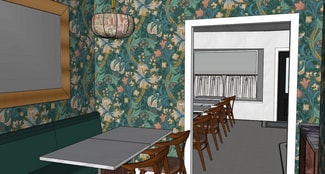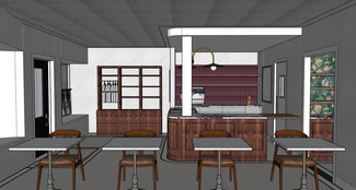 The space requires renovation, offering the incoming tenant a blank canvas to design a concept that truly fits the neighborhood. A conceptual rendering is available to help spark imagination and illustrate the potential for a warm, inviting café environment.