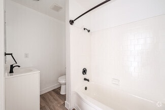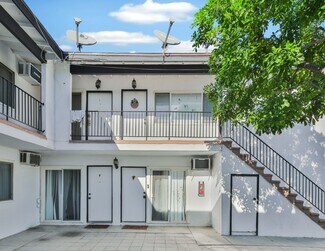 The units boast modern upgrades and fixtures including vinyl plank flooring, granite countertops, stainless steel appliance packages, private patios (in select units), renovated bathrooms, and efficient wall air conditioning and heating units. The property also offers private off-street assigned parking, on-site laundry facility, security video monitoring, and is part of a well-kept HOA community providing uniformity and cleanliness throughout the neighborhood.