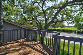 • ancient oaks shade porch and steps and building