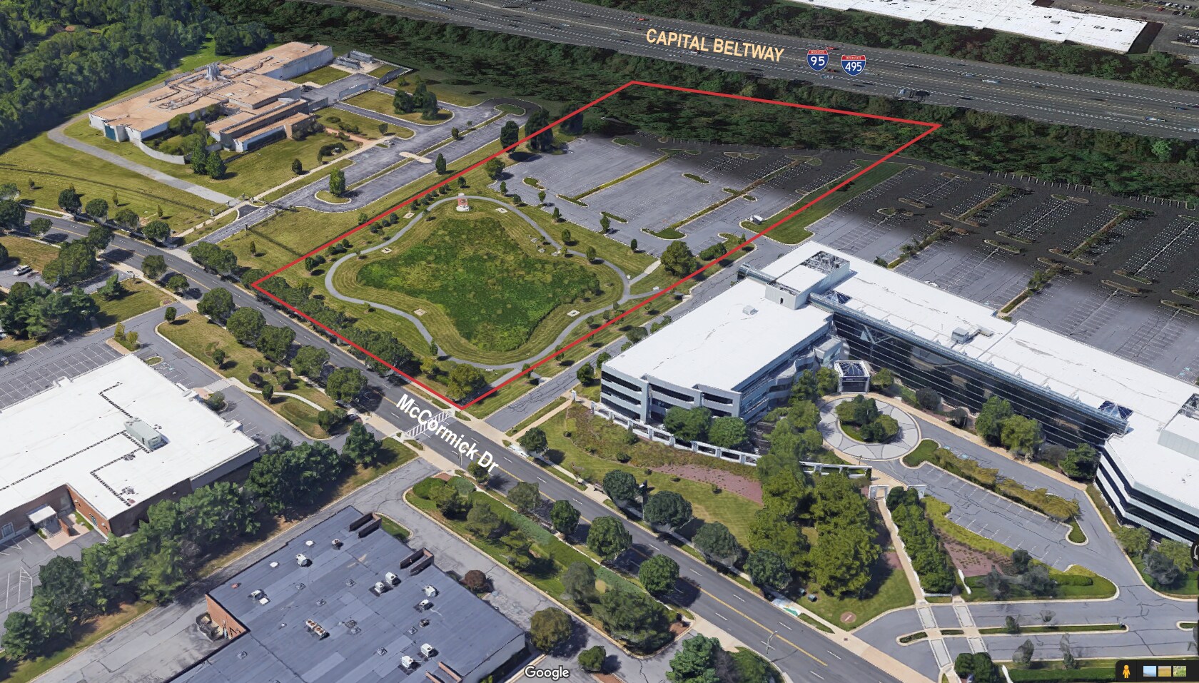 Currently used as outdoor fitness space and additional parking for 1616 McCormick Drive. The property has 304 parking spaces, as well as outdoor seating, sculptures, walking trail, and fitness equipment. 1440 McCormick Drive provides a development opportunity, with the approved RTO-H (Regional Transit Oriented High Intensity) zoning allowing for multifamily, office or retail uses. It is part of the former Largo campus of the University of Maryland Global Campus and is offered for sale or lease as a package or individually.