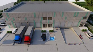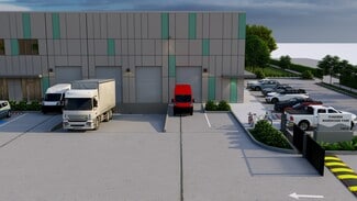 Total 33100 sqft concrete warehouse under construction to be completed by early 2026, 2 buildings 17300 + 15800 with total 30+ parking spaces and 8 loading dock + 8 drive in gates. Clear height is 28'. Price is for shell building. Could be divided into 8 spaces to rent out or sell as condo.